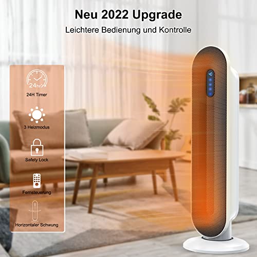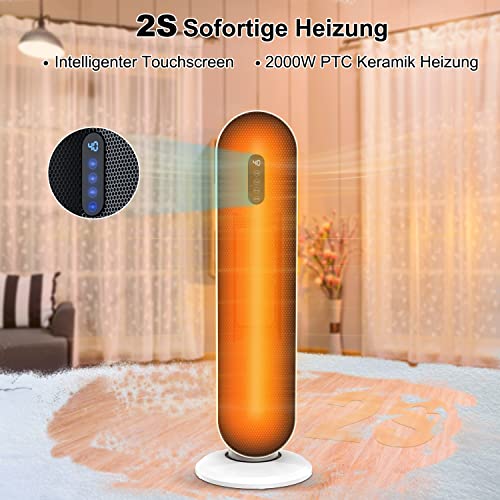 USCVIS 2000 W PTC keramische ventilatorkachel, energiebesparend, stil met afstandsbediening, elektrische verwarming met thermostaat, 15-40 °C instelbaar, 0-24 uur timer, oververhittingsbeveiliging en kantelbeveiliging, verwarming voor ruimtes