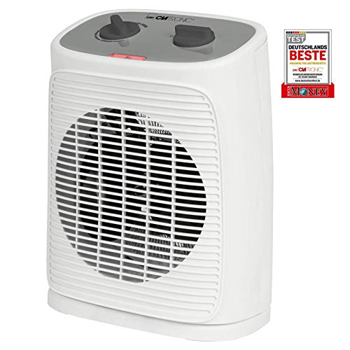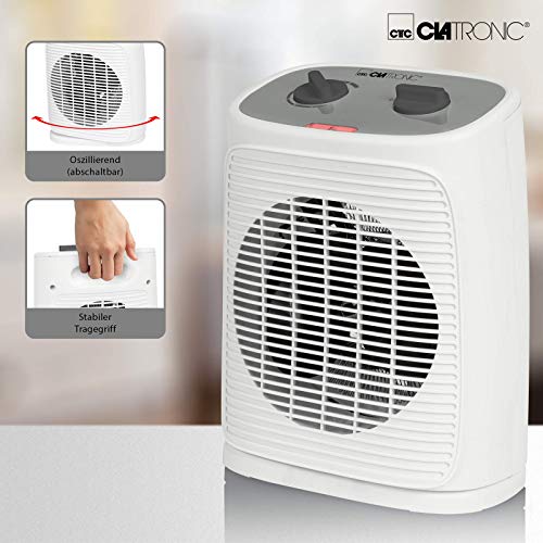 Clatronic Ventilator HL 3762, mobiele en compacte ventilatorkachel, 2 warmtestanden (1000/2000 W), oscillerend (uitschakelbaar), koudstand (ventilator), wit, 263953