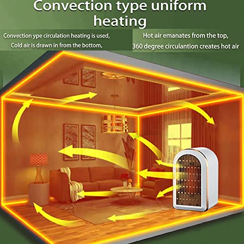 1200 W krachtige keramische verwarming, ventilatorkachel met zeer efficiënt convectieluchtkanaalontwerp, dat voor een snellere warmteafvoer kan zorgen, geavanceerd keramisch verwarmingselement, PTC-verwarmingsplaat en aluminiumplaat, dat in 1 seconde snel tot 40 graden kan opwarmen. De modus kan beter aan je eisen voldoen. 800 W en 1200 W vermogensniveaus, de traploos instelbare thermostaat kan de kamertemperatuur automatisch regelen. Je kunt de juiste modus naar wens selecteren om de prestaties en het energieverbruik van de verwarming te optimaliseren en je kamer bij koud weer warm te houden. Het draagbare verwarmingstoestel maakt gebruik van een zuivere koperen motor en een centrifugaal onderdruk-luchtkanaalsysteem, dat stil en geluidsarm is. Het is zeer geschikt voor binnenruimtes zoals kantoor, familie, slaapkamer, woonkamer, werkkamer enz., dus geen zorgen over als je werkt of uitrust. Een ideale aanvulling voor elk huis of kantoor. Onafhankelijk van olie en gas verwarmt dit praktische apparaat de lucht in een fractie van de tijd. Perfect voor gebruik in kantoren en slaapkamers. De keramische verwarming beschikt over een ingebouwde oververhittingsbeveiliging, een mechanische tuimelschakelaar en een controlelampje om ervoor te zorgen dat de mini-binnenverwarming in elke onveilige situatie direct wordt uitgeschakeld om ongelukken te voorkomen; perfect voor gezinnen met kinderen om plezier te hebben.