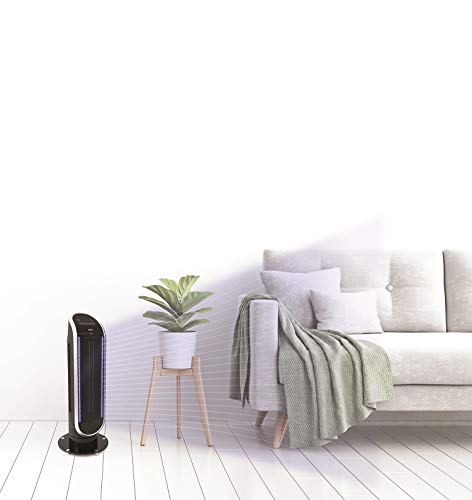 2-in-1 verwarmingstoestel & ventilatie: op koude dagen zorgen drie warmstanden voor behaaglijke warmte, terwijl de ventilatiefunctie in het warme seizoen aangename koeling in drie koude standen biedt – de leds stralen rood in de verwarmings- en blauw in de ventilatiemodus.