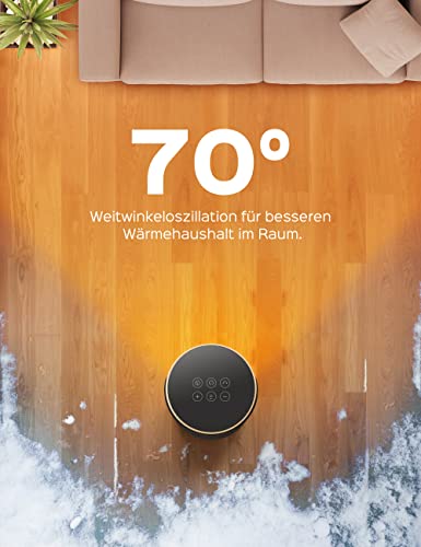 Gelijkmatige verwarming: het exclusieve trackball-systeem draagt bij aan een zachte en stille oscillatie. De 70°-groothoek-oscillatie met een levensduur van meer dan 750.000 cycli verhoogt de verwarmingsafdekking met 20%, wat ertoe bijdraagt de warme lucht gelijkmatig in de hoeken van de kamer te verdelen