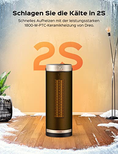 Dreo Elektrische Kachel Solaris Slim H3, 1800W Elektrische Verwarming met Thermostaat, Afstandsbediening, Oververhittings- en Kantelbeveiliging, 70° Oscillerend, Energiebesparende ECO-modus