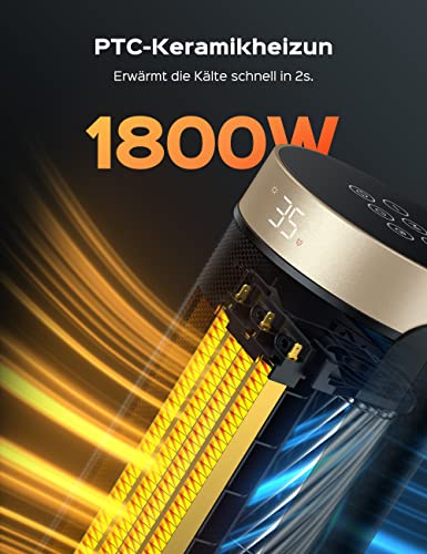 Snelle verwarming: de krachtige 1800 W PTC-keramische verwarming maakt het mogelijk om deze kachel in enkele seconden op te warmen, geschikt voor het opwarmen van ruimtes in huis, inclusief slaapkamers, kelders, garages, woonkamers, en kan ook worden gebruikt in kantoren, slaapzalen, warme yogastudio’s, enz