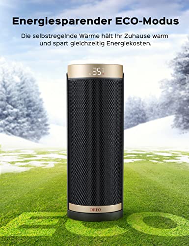 Energie-efficiëntie: bespaar energiekosten en leef duurzamer. Met een ingebouwde nauwkeurige temperatuursensor past de intelligente ECO-modus de werkmodus onafhankelijk (met een minimum van 900 W en een maximum van 1800 W) op basis van de omgevingstemperatuur aan