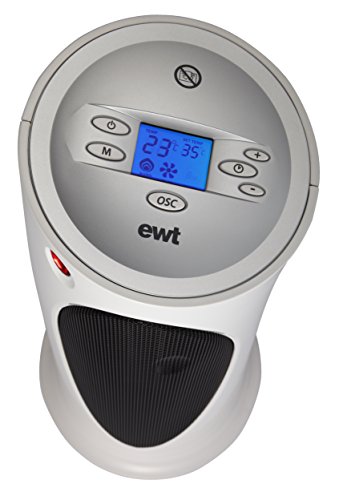 EWT Keramische ventilatorkachel C 220 LCD, 2-in-1 elektrisch verwarmingstoestel met ventilatiefunctie en thermostaat, incl. afstandsbediening, luchtfilter, traploos instelbaar, 2000 W, wit