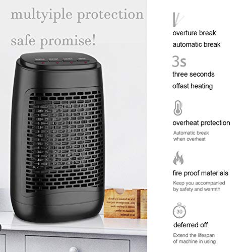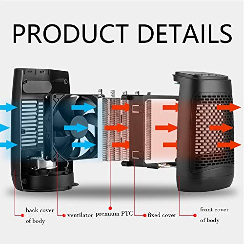 Draagbare mini-ventilator: productafmetingen 13,5 cm x 11,5 cm x 23,5 cm en productgewicht 950 g en het ontwerp met verzonken handgrepen. Deze ventilatorkachel is gemakkelijk mee te nemen. In plaats van het hele huis met traditionele centrale verwarmingen is onze keramische verwarmer veel sneller en efficiënter om benodigde kleine ruimtes op te warmen, waardoor je veel stroom kunt besparen